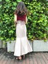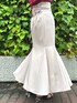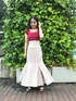 \後ろ姿がPOINT‼︎ マーメイドスカートコーデ❤️/ 赤トップスを差し色にした、 夏のお出かけにもピッタリな マーメイドスカートコーデ✨🧜🏻♀️ 【トップス】 デコルテの華奢なストラップデザインがアクセントになったニット🧶 スクエアネックにバックリボンスタイル/ 前後を逆にしてリボンをフロントクロスさせたチョーカースタイルの2WAY✔︎ 今季のサマーニットの中でも柔らかく薄手なので、真夏にも大活躍♡ 丈も比較的長めでパンツスタイルにも合わせやすい、万能トップスです♪ 【スカート】 MERCURYDUO定番のマーメイド美シルエットスカート🧜🏻♀️ フロント切替の片側にはさり気ないスリットがあしらわれています。 バックレースアップデザインで、後ろ姿も可愛く、お好みのフィット感で着用ができるのがPOINT✔︎ 162㎝/Mサイズ着用で足首上の丈感です📏 【サンダル】 私の今季イチ推しリアルバイサンダル👡 太めのダブルベルトとエナメル素材がクラシカルでありながら、 まあるいクリアヒールがアクセントになっていて新鮮✨ 靴底だけでなくダブルベルト部分にもフカフカなクッションが入っていて、 足当たり最高で一日中疲れ知らずです! 足のサイズ23.5㎝で36サイズがピッタリでした👣