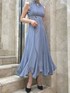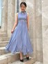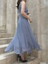 \スモーキーでシアーなブルーが素敵な カラードレス🩵/ 夏のお呼ばれコーデにお悩みの方におすすめしたい、 大人っぽく決まるカラードレス✨👗 一枚で着映えるitemなので、 スッキリまとめ髪&黒パンプスでシンプルに♪ お呼ばれ服としてはもちろん、 シアーカーディガンや華奢なサンダルを合わせれば、 ホテルディナーや特別な記念日デートにも◎ 【ワンピース】 エアリーでシアーなシフォンを贅沢に使った、 新鮮なシルエットのカラードレス👗 スカートのシルエットがらせん状にカッティングされた変形フレアで、 裾のランダムカットがオシャレ見え! 襟・ウエスト・袖ぐりの刺繍がアクセントになっています🪡 デコルテのスリットが今年らしさと抜け感を演出♪ 162㎝/Mサイズ着用で足首上の丈感でした📏