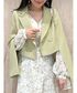 \トレンドど真ん中‼︎ 白ワンピ×カラージャケットコーデ🤍💚/ 前回更新したフェミニンワンピコーデに ライムカラーのクロップドジャケットを羽織れば、 トレンド感たっぷりなオシャレコーデに♪♪ (羽織り以外のお洋服の詳細は 前回stylingのコメントから✔︎) 【アウター詳細】 クロップド丈が脚長効果抜群なジャケット🧥 コンパクトシルエット・深Vネックラインで スッキリと着こなせます♪ 袖下にスリットが開いていてボタンで開閉OK👏 普段はスリット開きでトレンド感UPの着こなしに♪ お仕事や結婚式などのONシーンには スリットを開けずに... と幅広く活躍してくれます✨ 162㎝/Mサイズ着用で丁度良いサイズ感でした📏