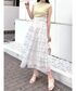 \爽やかフェミニンなドッキングワンピー 💛/ 爽やかなライムカラーのリブニットと シルバー刺繍のチェック柄スカートの ドッキングデザインが技アリな主役ワンピ!🪡 夏にサラッと一枚でも可愛く決まりますし、 次回更新するように羽織りを合わせれば、 春のお出かけにも◎🙆♀️ 【ワンピース】 ニット部分ははサラッと伸縮性のある生地で、 ノースリーブでも肩口まで覆ってくれる長で着やすさ◎ スカート部分はシアーなオーガンジーに キラッとした刺繍糸のチェック柄がアクセントになっています✨ ハイウエスト・コルセット風の切替・ バックレースアップでメリハリシルエットに♪ 162㎝/Mサイズ着用でふくらはぎ下くらいの スッキリした丈感でした📏 ※SM着丈差8cm 【シューズ】 春夏MERCURYDUO定番の通称"神サンダル"👡 身長もスラっと見えて デザイン性も合わせやすさも軽さも歩きやすさも... 全部叶う欲張りサンダルです! 23.5㎝/足の幅・甲が標準の私は36サイズがピッタリでした👣