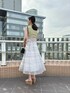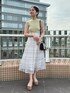\爽やかフェミニンなドッキングワンピー 💛/ 爽やかなライムカラーのリブニットと シルバー刺繍のチェック柄スカートの ドッキングデザインが技アリな主役ワンピ!🪡 夏にサラッと一枚でも可愛く決まりますし、 次回更新するように羽織りを合わせれば、 春のお出かけにも◎🙆♀️ 【ワンピース】 ニット部分ははサラッと伸縮性のある生地で、 ノースリーブでも肩口まで覆ってくれる長で着やすさ◎ スカート部分はシアーなオーガンジーに キラッとした刺繍糸のチェック柄がアクセントになっています✨ ハイウエスト・コルセット風の切替・ バックレースアップでメリハリシルエットに♪ 162㎝/Mサイズ着用でふくらはぎ下くらいの スッキリした丈感でした📏 ※SM着丈差8cm 【シューズ】 春夏MERCURYDUO定番の通称"神サンダル"👡 身長もスラっと見えて デザイン性も合わせやすさも軽さも歩きやすさも... 全部叶う欲張りサンダルです! 23.5㎝/足の幅・甲が標準の私は36サイズがピッタリでした👣