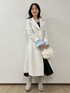 【コート】 セットインスリーブできちんと感があり、 ウエストシェイプされたシルエットが美しい一枚✨ バックスリットも相まって、 フワッと裾が広がる歩き姿もサマになる、 まさにスタイル映えコートです! 高品質ウール86%で たっぷり生地を使っているのに 軽くて暖かいのもPOINT✔︎ 【トップス】 私の今季ベストバイニット!🛒 ボリュームある袖フリル(取り外しOK)は アウターとのレイヤードもオシャレに決まります👏 デコルテの立ち上がるプチフリルも特徴で、 シャツ地をレイヤードしたかのようなデザインが 一枚でオシャレ上級者見え!!✨ オフショルダーデザインですが、 肩に華奢紐を付けているので、安定感◎ (6枚目のようにオンショルダーに近い着方も 私は好きなアレンジです♡) 【スカート】 ハンカチのような裾が今っぽい、 スタイリッシュなフェイクレザースカート🖤 前ウエストベルトがアシンメトリーになっているのもPOINT✔︎ ウエストから腰周りにかけてフィットしつつ、裾に向かって広がるシルエットなので、 スタイルアップ効果◎ Sサイズ着用→店頭Mサイズ完売でSサイズをきてみましたが、 後ろゴムの伸縮もありピッタリ! (ゆとり持って着たい・高身長さんで長め丈好きな方はMサイズがオススメです!) 【ブーツ】 トレンドのウエスタンブーツをMERCURYDUOらしい洗練シルエットにアレンジ🩶 ミドル丈ですが、前と後ろのVのカッティングが ふくらはぎを程よくカバーし、脚長効果◎ ヒールが8cmありますが、ふかふかインソールで安定感抜群です!