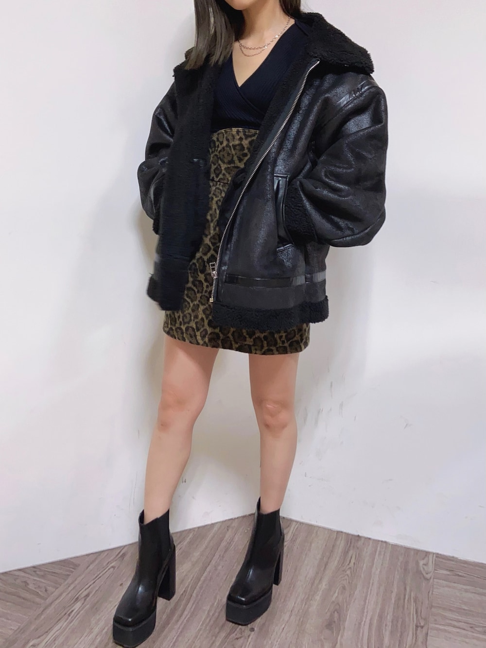 毎年人気のムートンブルゾン♪ 全色かわいくておすすめですが私は定番のブラックで合わせました⭐︎ 重たいイメージのムートンブルゾンですが軽くて柔らかいので着心地抜群です♡ 袖もゆったりなのでしっかり着込めます◎ 柄物をポイントにした冬ならではのおすすめコーデです!