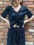 艶感があり、フロントギャザーが上品に見せてくれて女性らしさをアップさせてくれるトップスです! ギャザー部分は調整できるのでお好きな丈感でしぼってご着用いただけます♩ キツめにしぼる事でさりげない肌見せから、ウエストラインを華奢にキレイに見せてくれるので着痩せ効果も◎です! サラッとしてる薄手の生地感なので、これからの季節にピッタリ! ラフなパンツにはトレンドのステッチサンダルが今年っぽいイメージで着こなせておすすめです! ヒールもあるのに傾斜もなく、とにかく軽いので履き心地抜群です❤︎ ボトムスはハイウエストのデニムなどのスタイルアップコーデもおすすめです♩