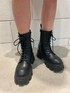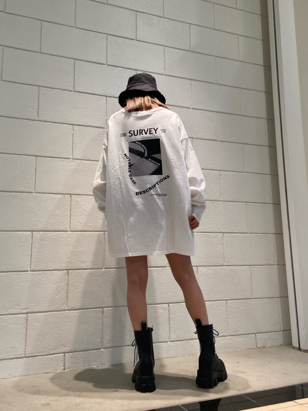 【トップス】バッグアートがかわいいロンT❤︎ビッグシルエットなので1枚で着ていただいても◎♩後ろが少し長めに作られているので、身長156cmの私でヒップがすっぽり隠れる丈感でした❤︎ 【シューズ】ソールがポイントでかわいいレースアップブーツ❤︎見た目のボリューム感に比べて、とても軽いです!!合皮なので履いてくうちに馴染んでくるので履きやすいです❤︎ヒールは全サイズ共通6cm⭐︎足出しコーデはもちろん、ブーツinコーデもかっこよく決めれるのでどんなコーデにも合わせやすいです❤︎