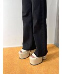 春のお出かけコーデ❤︎ 【ジャケット】ポリエステルでシワになりにくく、持ち運びなどもしやすいタイプです⭐︎夏なら冷房対策にも◎❤︎腰位置くらいのショート丈なので、フワッとしたデザインのボトムスと合わせていただいてもバランス良く着ていただけます❤︎ 【トップス】フィット感があり、ストラップ部分が太いので、インナーに困らず着ていただきやすいです⭐︎サイドがカーブになっているのも、かわいいポイントです❤︎ 【スカート】ウエストからヒップにかけてピタっとしていて、裾がフレアになっているのでヒップ周りのカバーにも◎骨格ウェーブの方におすすめのシルエットです❤︎ 【シューズ】ヒールが14cmと高めですが、前底も高さがあるので傾斜がなく、安定感があります❤︎見た目以上に軽いので疲れにくく、歩きやすいタイプです⭐︎