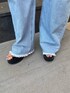 ピタゆるコーデ❤︎ 【トップス】今季トレンドのショート丈トップス❤︎スクエア襟でデコルテをキレイに見せてくれるので、小顔効果◎おへそ少し上くらいの、丈感です⭐︎ワンピースや、サロペットなどのインナーとしても使いやすいです❤︎ 【デニム】ハイウエストデザインなので、コンパクトなトップスとの相性◎です❤︎着用当初は固めなのですが、綿100%なので履いていくうちに馴染んできます⭐︎丈感は長めなので、私の身長で7〜8cmヒールが丁度良かったです! 【シューズ】前底にも厚みがあり、安定感抜群の厚底サンダル❤︎見た目に比べて軽いです!!合皮なので、履いていくうちに横幅は馴染んで柔らかくなりますよ⭐︎ソックスを合わせて履いていただくのもおすすめ!ヒールは全サイズ11cmです⭐︎