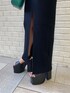 オールブラックコーデ❤︎ 【ワンピース】大人気のスリットニットマキシワンピース❤︎フィット感があり、ウエストマークされたデザインなので、くびれをすっきりと見せてくれます❤︎156cmの私の伸長で膝上、拳1個分くらいの位置までスリットが入っています⭐︎丈は長めですが、ヒップあたりでピタっと止まってくれるイメージなので低めのサンダルでも着れます❤︎ 【シューズ】毎年大人気のコンビネーションサンダル❤︎全サイズ共通、ヒール13cm、ソール7.5cmありますが、傾斜が少ないので安定感があり、足が疲れにくいタイプです⭐︎マットな合皮なのでお洋服馴染みやすいのでどんなコーデにも合わせやすいです❤︎22.5cm、Sサイズを着用していて、ピッタリのサイズ感でした⭐︎ 【バッグ】EMODAオリジナルのロゴ入りショルダーバッグです❤︎縦長なので、長財布も収納でき、出し入れしやすいです!ハンドで持っても可愛いデザインです❤︎