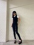 【ロゴTシャツ】何枚あっても使える!コンパクトなTシャツです⭐︎コットン100%なので肌触りもよく、ホワイトでも透け感少ないので、夏着ていただきやすいです。デザインボトムスと合わせて、シンプルに1枚で着ていただくのもおすすめです⭐︎ 【ニットベスト】トレンドのチェッカー柄で、立体的なデザインなので、無地でもお洒落感があります❤︎1枚で着ても可愛いですが、今季はTシャツとレイヤードしていただくのがおすすめの着方です⭐︎ 【デニム】後ろのレースアップがポイントのスキニーハイウエストデニム。コルセットベルトのような役割をしてくれるので、腰回りがすっきりと引き締まって見えます❤︎レースアップは、ある程度微調整できるので、お好きなサイズ感で着ることができます⭐︎シンプルなトップスとの相性◎ 【シューズ】毎年大人気のコンビネーションサンダル。全サイズ共通、ヒール13cm、ソール7.5cmありますが、傾斜が少ないので安定感があり、足が疲れにくいタイプです⭐︎マットな合皮なのでお洋服馴染みやすいのでどんなコーデにも合わせやすいです❤︎私は22.5cmでSサイズを着用していて、ピッタリのサイズ感でした⭐︎