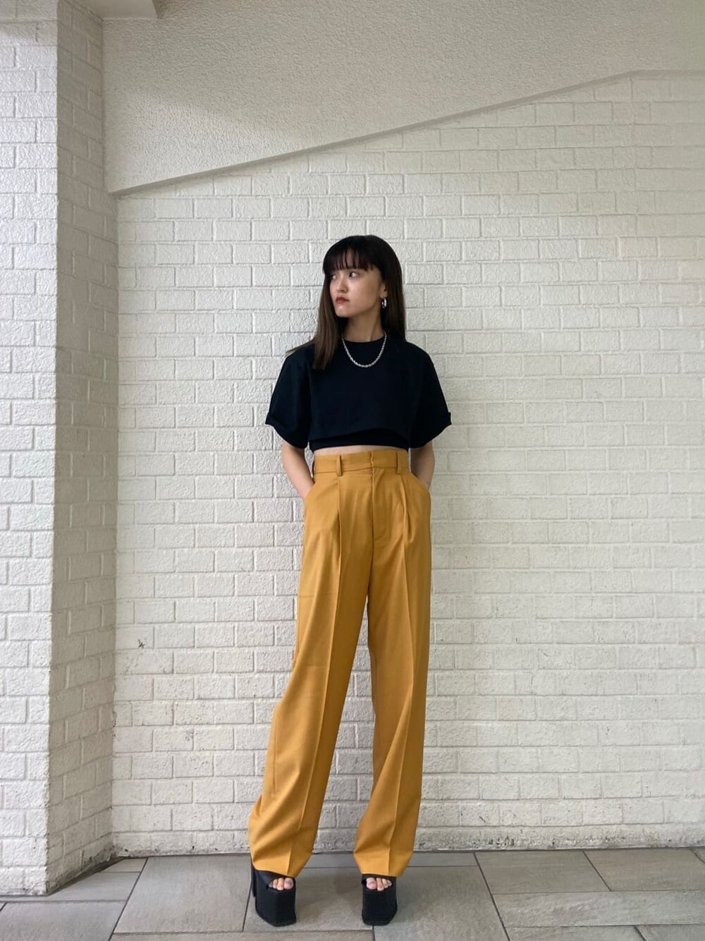 カラーパンツがポイント❤︎2トーンコーデ❤︎ 【トップス】中にタンクトップがくっついたデザインで、腕を上げても引っ張られないので、インナーが見える心配要らずです⭐︎オーバーサイズなので、腕回りカバーにも◎おへそ上、手1個分くらいのショート丈なので、ボトムスはハイウエストで合わせていただくとバランス良く着ていただけます❤︎ 【ボトムス】センタープレス加工が入っていることで、キレイめにもカジュアルにも合わせやすいデザインです❤︎ハイウエストなので、トップスinか、ショート丈のトップスで合わせていただくのがおすすめです❤︎私の身長で、10cm程ヒールが必要でしたので、丈は長めデザインです! 【シューズ】毎年大人気のコンビネーションサンダル❤︎全サイズ共通、ヒール13cm、ソール7.5cmありますが、傾斜が少ないので安定感があり、足が疲れにくいタイプです⭐︎マットな合皮なのでお洋服馴染みやすいのでどんなコーデにも合わせやすいです❤︎22.5cm、Sサイズを着用していて、ピッタリのサイズ感でした⭐︎