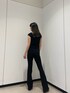 夏のオールブラックコーデ❤︎ 【トップス】リブ素材でフィット感のあるシルエットです!ショート丈でコンパクトなデザインなので、ボトムスはハイウエストがおすすめです⭐︎ 【ボトムス】伸縮性抜群で履きやすいです❤︎156cmの私でスニーカーでも履ける丁度良い丈感です⭐︎ 【シューズ】アッパー部分が覆われているので、安定感があります⭐︎全サイズ10.5cmヒールで、22.5cmでSサイズ着用です⭐︎