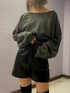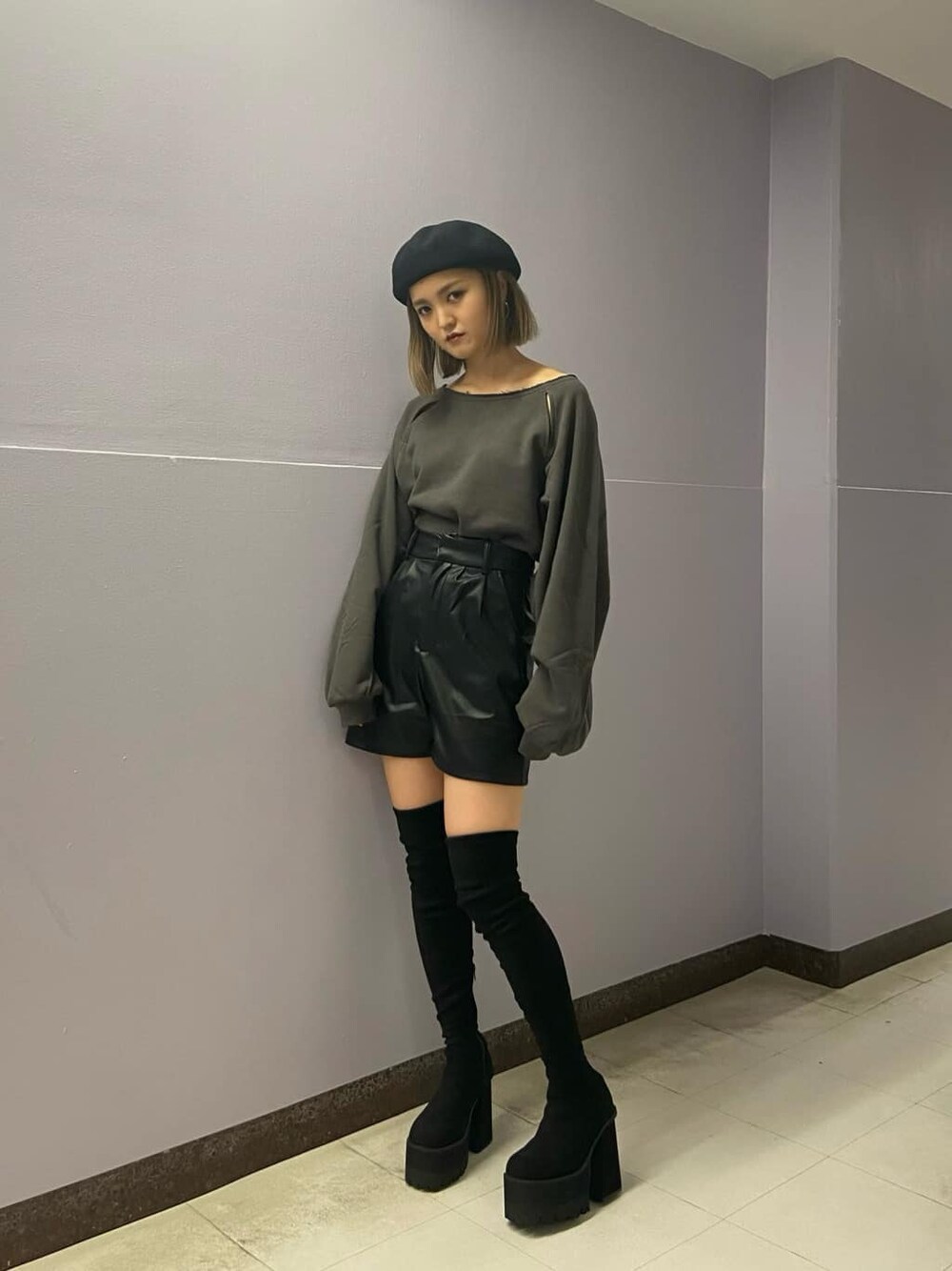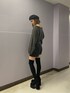 モードコーデ❤︎ 【トップス】首回り広めなデザインなので、オーバーサイズでも抜け感があります⭐︎おへそ少し隠れるくらいのショート丈です⭐︎ 【ボトムス】合皮で柔らかく、履きやすいです!ハイウエストで、裾が少し広がっているようなデザインになっていることで、脚を華奢に見せてくれます❤︎私の身長で膝上拳2個分くらいの丈感でした⭐︎ 【シューズ】ピタっとしてくれるので、足にフィットしてくれて脚長効果抜群です❤︎小柄な方は、少し内側に追っていただくと、ボトムスとバランスよく着れるのでぜひ試してみてください❤︎私も折り込んで履いています!前底もあり傾斜がないので、安定感抜群⭐︎22.5cmでSサイズを着用しています⭐︎