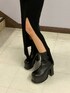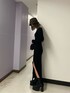 オトナ女子オールブラックコーデ❤︎ 【ワンピース】夏大人気だったスリットワンピースの秋バージョンです❤︎高めの腰位置で切り替えになっているのでシルエットをキレイに見せてくれます!私の身長でスニーカー履いても擦らない丈感で着れました⭐︎ 【シューズ】ヒールは10.5cmありますが、傾斜が少ないので、疲れにくく歩きやすいです!22.5cmでSサイズを着用してます⭐︎