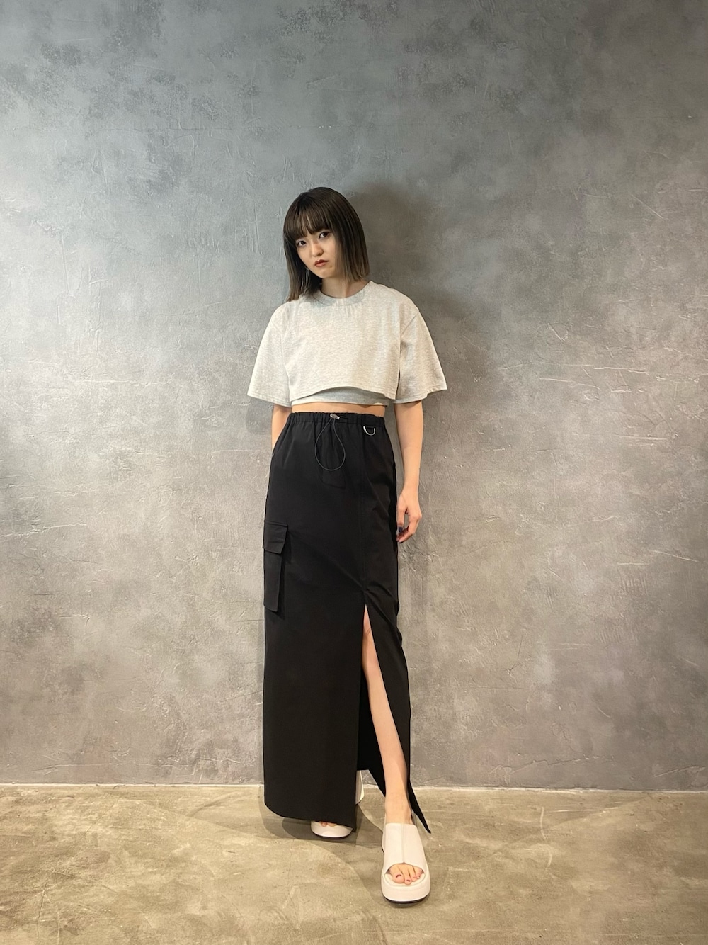 ラフコーデ⭐︎ 【トップス】去年も人気だったレイヤード風TシャツTシャツ部分はオーバーサイズで、インナーはリブになっているのでフィット感があり、よりウエストをすっきり見せてくれます!おへそ出るくらいのショート丈です⭐︎ 【ボトムス】今季トレンドのカーゴタイプ⭐︎スリットが入っているのでキレイめにもカジュアルにも使いやすいです!ウエストがゴムで、ドローコードが付いているので、ウエストの調整可能です⭐︎ 【シューズ】クッションが柔らかく、履きやすさ◎ヒール8cmで程よい高さなのでラフに履きやすいです⭐︎22.5cmでSサイズを着用しています。