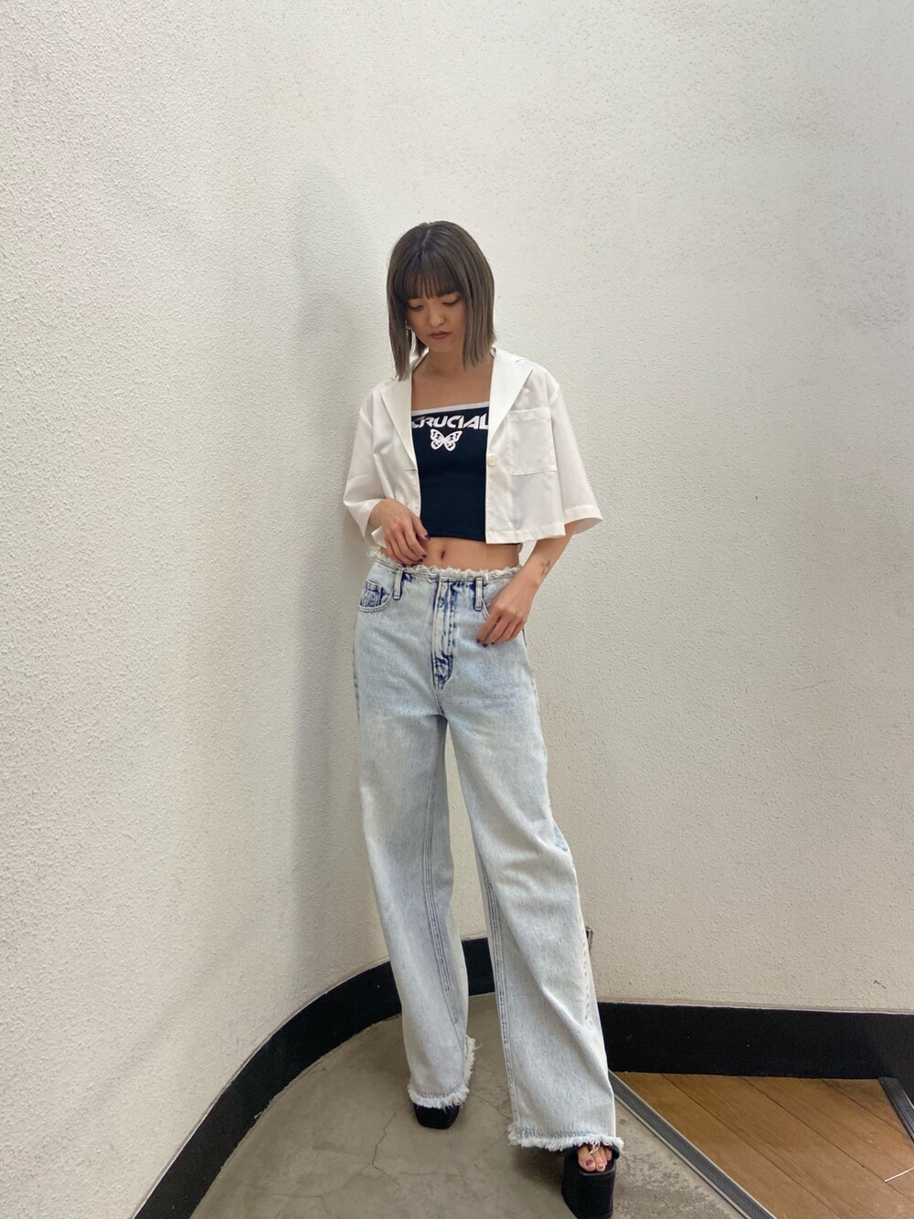 カジュアルコーデ⭐︎ 【シャツ】羽織りでもトップスでも使えるシャツです⭐︎オーバーサイズで袖が肘くらいの丈感なので二の腕をカバーしてくれます。 【インナー】トレンドのY2Kファッションにピッタリのインナーです⭐︎ピッタリめでショート丈なので肌見せして着ていただくのが今季のおすすめです!スカートコーデにも◎ 【ボトムス】程よいワイドなのでキレイめなトップスとも合わせやすいです!私の身長で少し長めなのでジャストサイズで履きたい方は厚底と合わせていただくのがおすすめです。 【シューズ】毎年人気の厚底サンダルです❤︎前底も高さがあることで、傾斜が少ないので履きやすく、歩きやすいです⭐︎22.5cmでSサイズを着用しています。