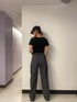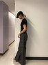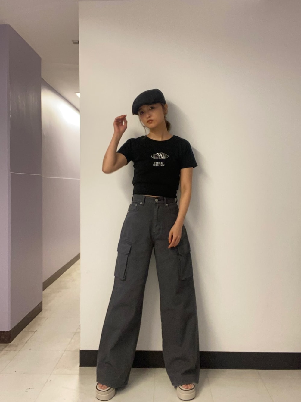 ワントーンコーデ⭐︎ 【トップス】ストーンロゴになっているTシャツで1枚でかわいいデザインです。インナーとしてもおすすめです⭐︎おへそ出るくらいの丈感です! 【ボトムス】エモダ初のカーゴパンツ⭐︎おへそ隠れるくらいの股上の深さなのでショートトップスとの合わせも◎!156cmで、結構長めなので7cm以上のヒールと合わせると裾擦らないで履いていただけます⭐︎ 【シューズ】前底もあり傾斜が少ないので、安定していて歩きやすいです❤︎パンツコーデにも合わせやすいです!22.5cmでSサイズを着用しています。