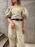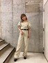 セットアップコーデ❤︎ 【トップス】パフデザインが二の腕をカバーしてくれ、スクエアネックなので華奢に見せてくれるデザインです❤︎バッグデザインにゴムを施しているので着やすいです。 【ボトムス】ハイウエストで、シルエットをキレイに見せてくれるデザイン。156cmの身長で長めなので、ヒールと合わせていただくのがおすすめ⭐︎ 【シューズ】毎年人気の厚底サンダルです❤︎前底も高さがあることで、傾斜が少ないので履きやすく、歩きやすいです⭐︎22.5cmでSサイズを着用しています。