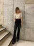 きれいめコーデ❤︎ 【トップス】デコルテをキレイに見せてくれるシルエットなので華奢に見え効果◎!裾がクロスになっていてショート丈なので、ハイウエストボトムやルーズなパンツと合わせていただくのがおすすめです⭐︎ 【デニム】人気のフレアデニムがバージョンアップしました⭐︎サイドがストリングになっていることで、ウエストを細く見せてくれます!スリットが入ってるのもポイント❤︎伸縮性抜群で着心地◎です! 【シューズ】毎年人気の厚底サンダルです❤︎前底も高さがあることで、傾斜が少ないので履きやすく、歩きやすいです⭐︎22.5cmでSサイズを着用しています。