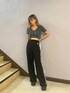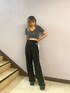 きれいめカジュアルコーデ❤︎ 【トップス】伸縮性がある生地感なので、とても着やすいです!フロントのチェーンは取り外し可能です⭐︎きれいめなデザインですが、今年っぽくルーズなボトムスと合わせるコーデもかわいいです! 【ボトムス】裾にZIPを施してるのでお好きに調整できます。程よくフレアなので、脚長効果も◎ 【シューズ】毎年人気のサイドゴアブーツです⭐︎軽いのでとても履きやすいです!22.5cmでSサイズを着用しています。