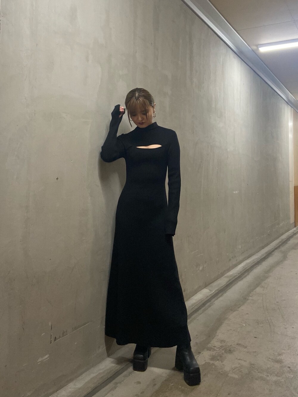 kasumi(ELENDEEK)のワンピース「カットアウトマキシニットワンピース」を使ったコーディネート