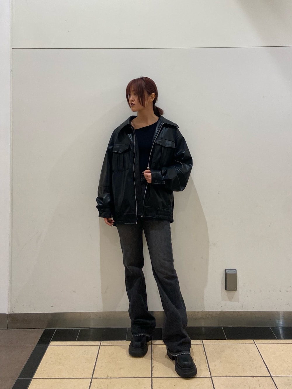 kasumi(ELENDEEK)のブルゾン「フェイクレザーオーバーブルゾン」を使ったコーディネート