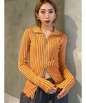 kasumi(ELENDEEK)のニット/セーター「クラッシュリブジップフィットニット」を使ったコーディネート