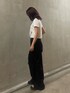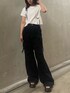 シンプルコーデ 【トップス】今季トレンドのリボンデザインTシャツ⭐︎ショート丈なので、ハイウエストで合わせていただくのがおすすめです! 【デニム】おすすめのデザインルーズデニム!タック加工を施しているので立体感があり、シンプルなトップスと合わせても存在感があります⭐︎丈感長めなので、厚底と合わせて履いていただくのがおすすめです! 【シューズ】去年も人気だったニットバンドサンダルです⭐︎軽くて履きやすいデザインです!22.5cmでSサイズ着用してます⭐︎