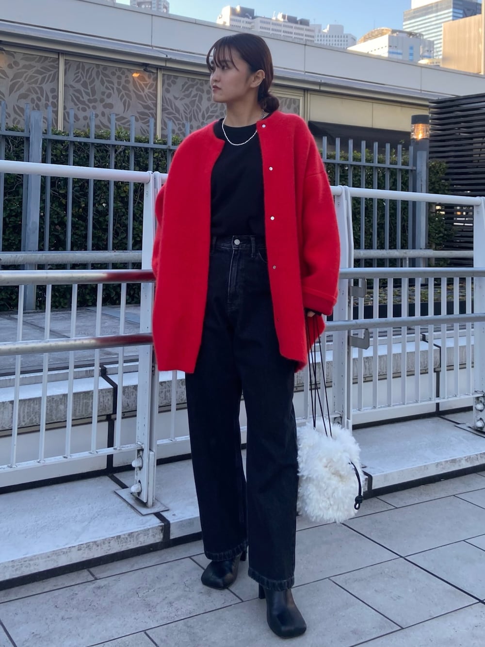 きれいめカジュアル 【ニットカーデ】毎年人気のラクーンカーディガンです⭐︎軽くてあたたかいので、ライトアウターとしての着用もおすすめです♪着用は02サイズでゆったりめで着用しています。 【デニム】コットン100%なので履き心地◎です♪ヒップ周りもゆとりがあるのでラフに合わせやすいシルエットです!156cmで01サイズを着用しています。 【シューズ】どんなコーデにも合わせやすい丈感とデザインです♪ 足に馴染みやすく、軽いです! 22.5cmで37サイズを着用。 【バッグ】コーデのアクセントにもなるファーバッグ♪持ち手が合皮なので、ファーでも甘くなりすぎずコーデも合わせやすいです♡