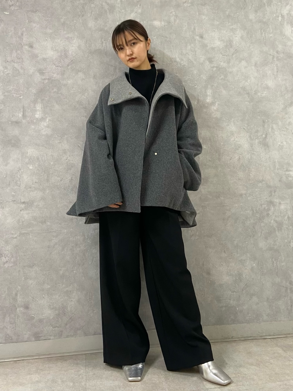 きれいめコーデ 【コート】ケープ型なのでゆったりデザインで軽くて着やすいです♪ヒップ隠れる丈感なのでスタイリングもしやすいアウターです⭐︎ 【ニット】カシミヤ混の素材でなめらかな肌触りです!ウエストがシェイプしてみえるデザインなのでスタイルアップ◎なニットです♡ 【ボトムス】センタープレスも入っているので スタイルアップ◎156cmで01サイズを着用。 【シューズ】2WAYで使えるブーティです⭐︎かかとを折り込むとサンダルとしても着用◎中のクッションも柔らか履きやすいです!22.5cmで37サイズを着用しています。