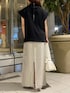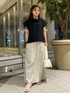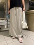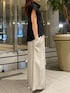 きれいめコーデ 【トップス】ゆとりあるオフネックなので、すっきりな印象に♪サラッとした生地感で夏でも涼しく着用できます。 【ボトムス】ウエストが総ゴムなのでストレスフリーで着用できます♪ラインを拾いすぎないほどよいIラインシルエットなので、体型カバー◎です。 【シューズ】低反発クッションが施されてるので、フラットでも歩きやすいです。22.5cmだと37サイズがおすすめです。