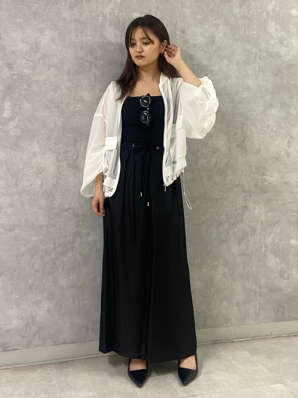 おでかけコーデ 【アウター】定番の人気アイテムです♪春夏使いやすい1着です!袖口がゴム加工なので、手首をだした抜け感ある着こなしもおすすめです。 【インナー】パッド付きで1枚で着用しやすいタンクトップです!リブ素材なのでほどよく伸縮性も◯ 【ボトムス】ウエストが総ゴムなのでストレスフリーで着用できます♪ラインを拾いすぎないほどよいIラインシルエットなので、体型カバー◎です。 【シューズ】クッションが柔らかいので足の負担が少なく歩きやすいです。22.5cmで37サイズを着用。