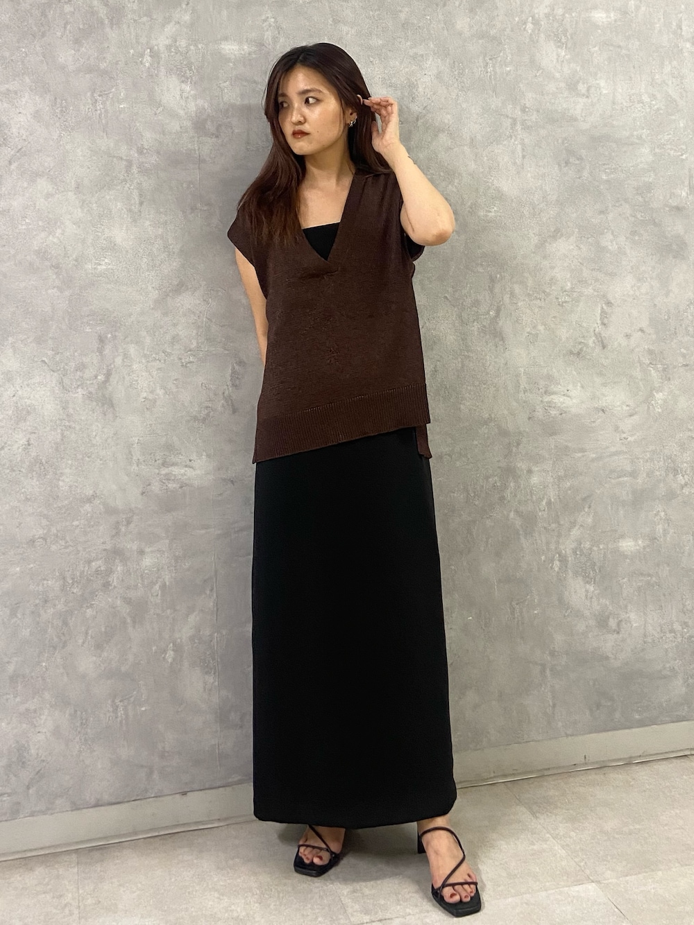 kasumi(ELENDEEK)のベスト「スキッパーニットベスト」を使ったコーディネート