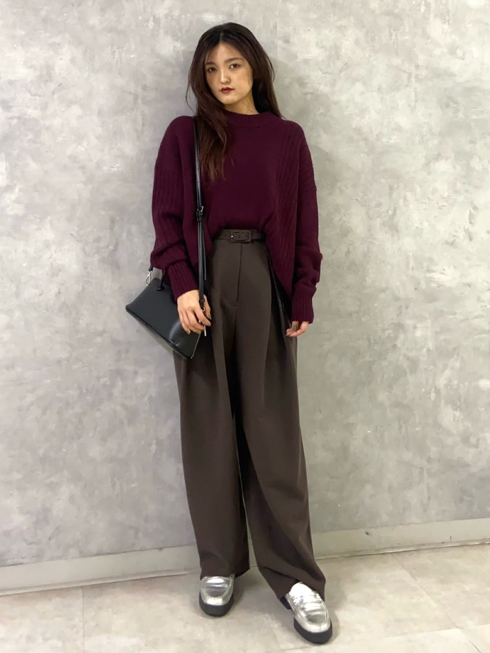 きれいめコーデ 【トップス】アシンメトリーデザインがポイントのニットでサラッとラフに着やすいです。ボトムスも選ばずどんなアイテムとも着回ししやすいです。 【ボトムス】ウエストのタックがシルエットをきれいにすっきりと見せてくれるデザインです。カジュアルなアイテムとの合わせも◎ 【シューズ】HARUTAコラボのローファーです。 とても軽く履きやすいです。 22.5cmで36サイズを着用してます。