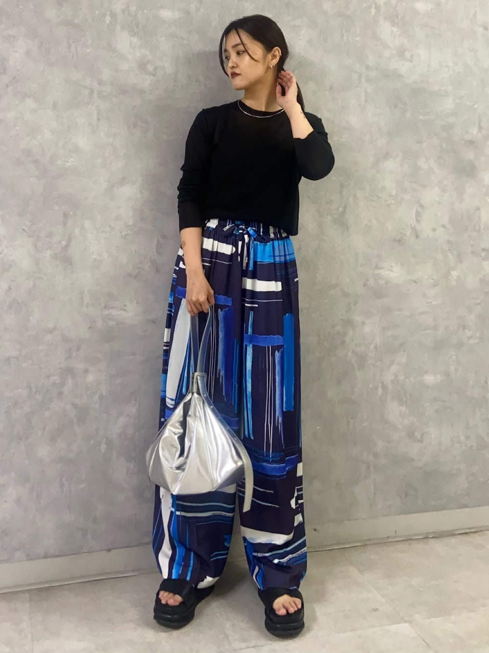 きれいめカジュアル 【トップス】シアー感のある薄手のニットなので1枚でもインナー使いにもおすすめです。シルエット拾いすぎないのもおすすめポイントです。 【ボトムス】ウエストが総ゴムなのでストレスフリーで履きやすいです。春〜夏にかけて着用しやすい素材感です。 【バッグ】2WAY仕様のフォルムバッグです。ストラップのサイドにあるボタンを外すと斜め掛けのバッグとしても使用可能なデザインです!
