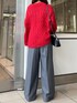 きれいめカジュアル 【ニット】Vネックの抜け感あるケーブルニットで、フェミニンにもきれいめにも合わせれるニットです!丈が後ろが長くなってるのもポイントです。 【パンツ】ハイウエストシルエットでウエストまわりをきれいに見せてくれてスタイルアップ効果◯ウエスト後ろ部分にゴムが施されてるので履き心地も良いです。 【シューズ】HARUTAの代表的なスポックシューズです。軽くて履きやすいデザインです。サイドのカーブが足をキレイに見せてくれます。22.5cmで36サイズを着用。