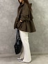 カジュアルコーデ 【アウター】内側にドロストが施されてるのでウエストをシェイプしてくれてスタイルアップ効果◎きれいめコーデにも合わせやすいアウターです。 【トップス】カジュアルラインですが、きれいめなアイテム、スカートなどを合わせたコーデもおすすめです!シルエットを拾わないゆったりデザインで1枚でもインナーとしても着回し◎ 【ボトムス】サラッとした肌触りで春夏に着やすい素材感です。ストレッチが効いてるので伸縮性◎ボリューム感あるトップスとの合わせがおすすめです。 【シューズ】 クッションがやわらかく、ヒールでも安定感があり歩きやすいです。22.5cmで37サイズを着用。