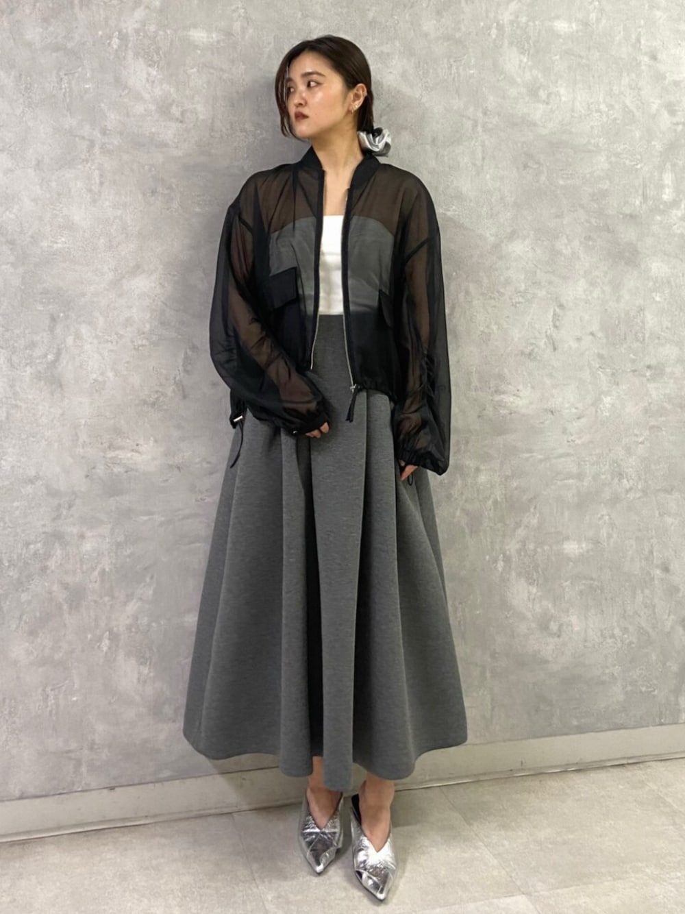 きれいめコーデ 【アウター】オーバーサイズ感なので夏でもサラッと羽織りやすいです。ヒップまで隠れる長め丈感でシルエットカバーも◯。 【スカート】ハリ感がありタックも入っていることでウエストはすっきりと、全体は立体感のあるフレアがキレイなデザインです。 156cm01サイズを着用。 【シューズ】クッションがやわらかく、ヒールでも安定感があり歩きやすいです。22.5cmで37サイズを着用。