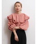 【girlyとcasualのミックスコーデ】サーモンピンクで可愛らしい印象のフリルブラウス。デニムとスニーカーでカジュアルダウンしてみました。ふんわりしたシルエットのブラウスなので、デニムにインしてメリハリを◯ よりカジュアルに着たい方は、スキニーよりもストレートデニムがおすすめ!個人的には、ゆるゆるなボーイズデニムの合わせも好きです。小物はブラックで統一させ、甘くなりすぎないコーデの完成◎デートコーデにもいかがですか♡