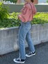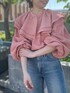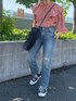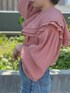 【girlyとcasualのミックスコーデ】サーモンピンクで可愛らしい印象のフリルブラウス。デニムとスニーカーでカジュアルダウンしてみました。ふんわりしたシルエットのブラウスなので、デニムにインしてメリハリを◯ よりカジュアルに着たい方は、スキニーよりもストレートデニムがおすすめ!個人的には、ゆるゆるなボーイズデニムの合わせも好きです。小物はブラックで統一させ、甘くなりすぎないコーデの完成◎デートコーデにもいかがですか♡