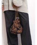 岸本安純(Ungrid)のハンドバッグ「ジャカード巾着バッグ」を使ったコーディネート