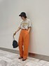 麻素材の涼しいカラーパンツが入荷しました。低身長さんにもピッタリな着丈◎ ウエストのボタンが大きなシェルで可愛いです。グレーのロゴTeeとの組み合わせもオシャレでおすすめです。
