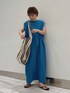 鮮やかなブルーのワンピース。透け感ないので、1枚でラフに着て頂けます。サンダルとポイントにストライプバッグで夏らしいスタイリングにしました◯ バッグは店舗限定アイテムです⭐︎