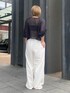 【トップス】 細かいメッシュ編みで、肌見せもナチュラルに♪インナー変えるだけで、シーズンも幅広く着用出来ますよ。夏はキャミソールかタンクトップがおすすめです◎ 【パンツ】 ラフさありつつ、ジャカード素材で高見えパンツ◎ホワイトでも透け感をあまり気にせず着用出来ました。