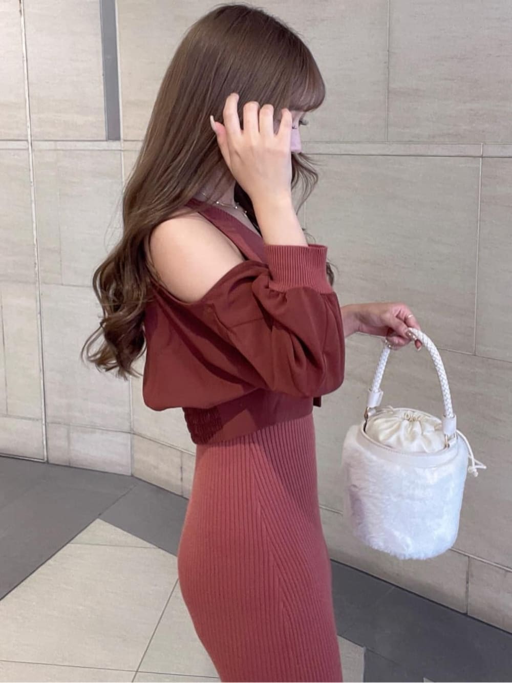 YURINA(RESEXXY)のショルダーバッグ「ツイストハンドルフラッフィーバッグ」を使ったコーディネート
