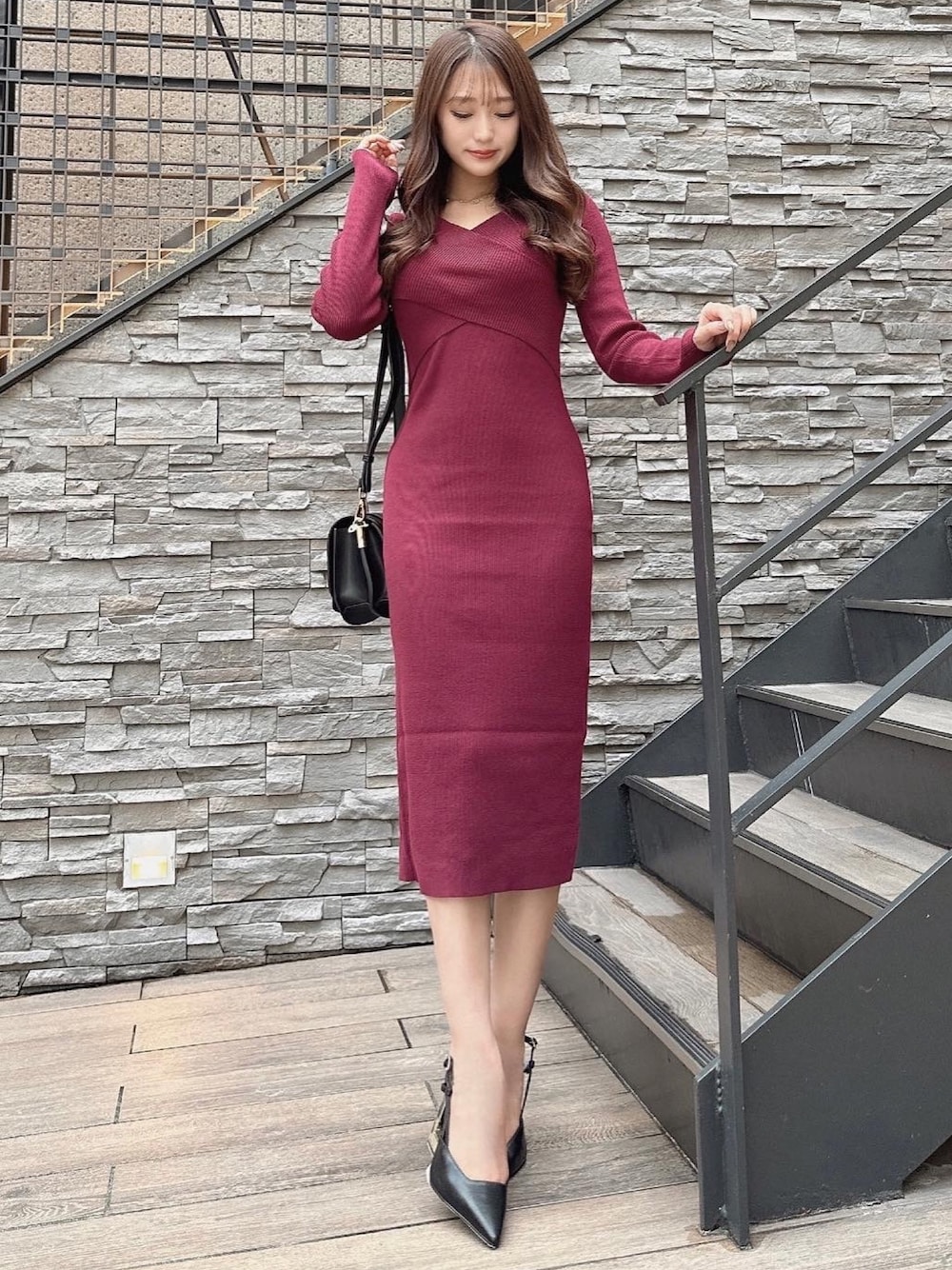 YURINA(RESEXXY)のワンピース「フロントクロスニットタイトワンピース」を使ったコーディネート