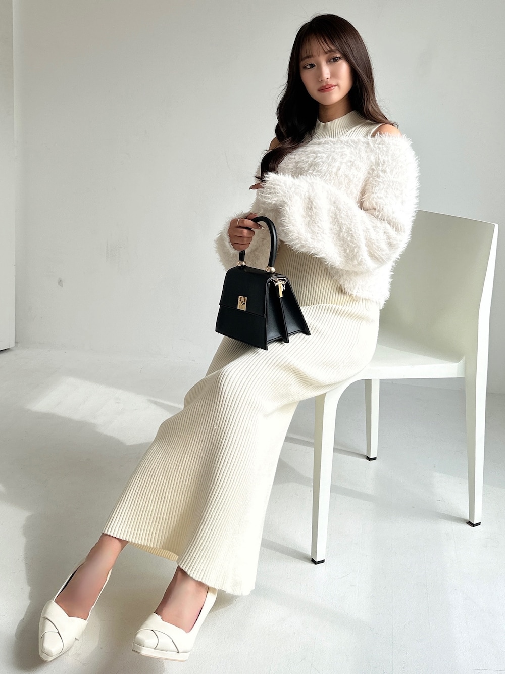 トップスとワンピースがSETになっており着回し抜群♡ボリュームあるニットに、タイトなワンピース合わせがバランス良く細見え効果◎