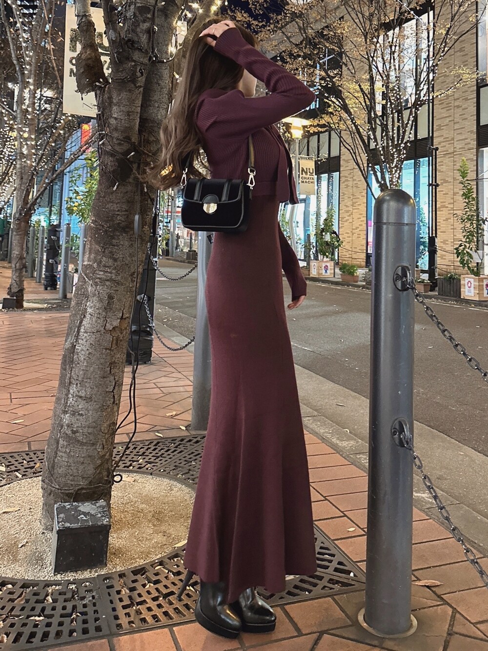 YURINA(RESEXXY)のワンピース「ボウタイマーメイドニットワンピース」を使ったコーディネート