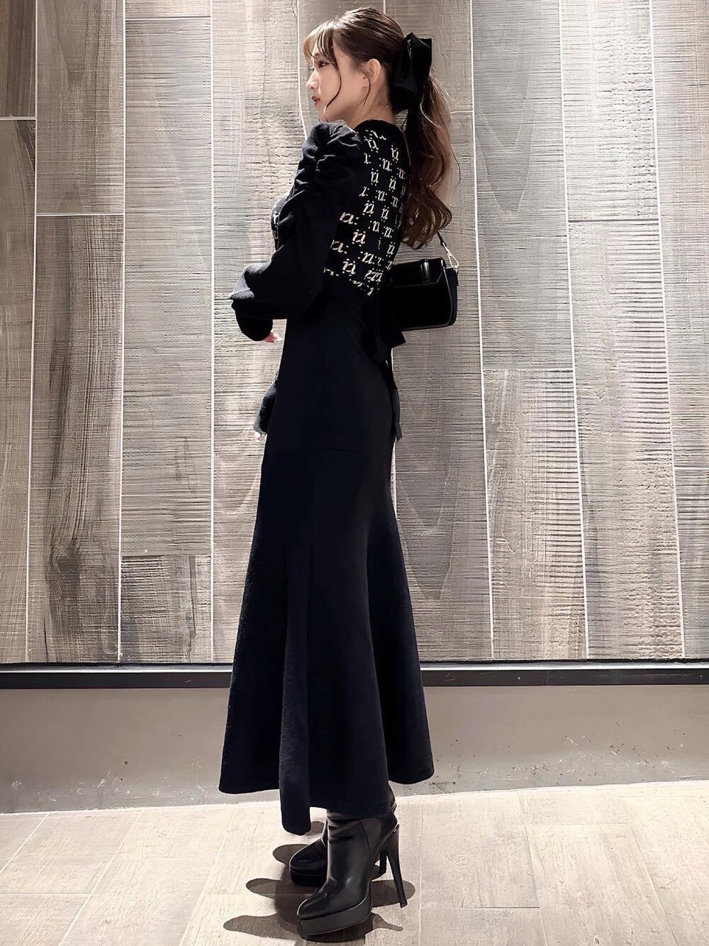 YURINA(RESEXXY)のワンピース「モノグラムマーメイドニットワンピース」を使ったコーディネート