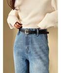 ピンクニット×デニムで春っぽコーデに♡カジュアルですが、小物はブラックで合わせて締まった印象に✨