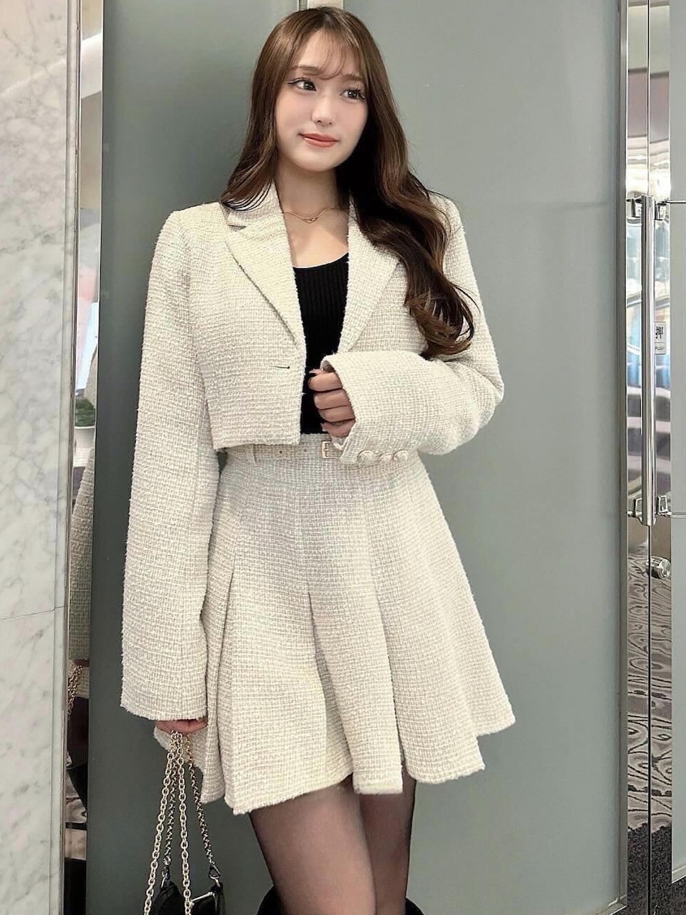 YURINA(RESEXXY)のテーラードジャケット「ツイードクロップドジャケット【セットアップ着用可能】」を使ったコーディネート